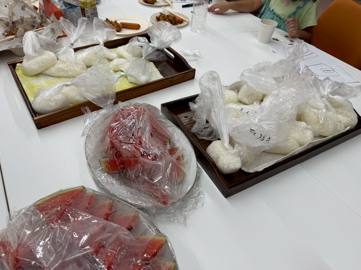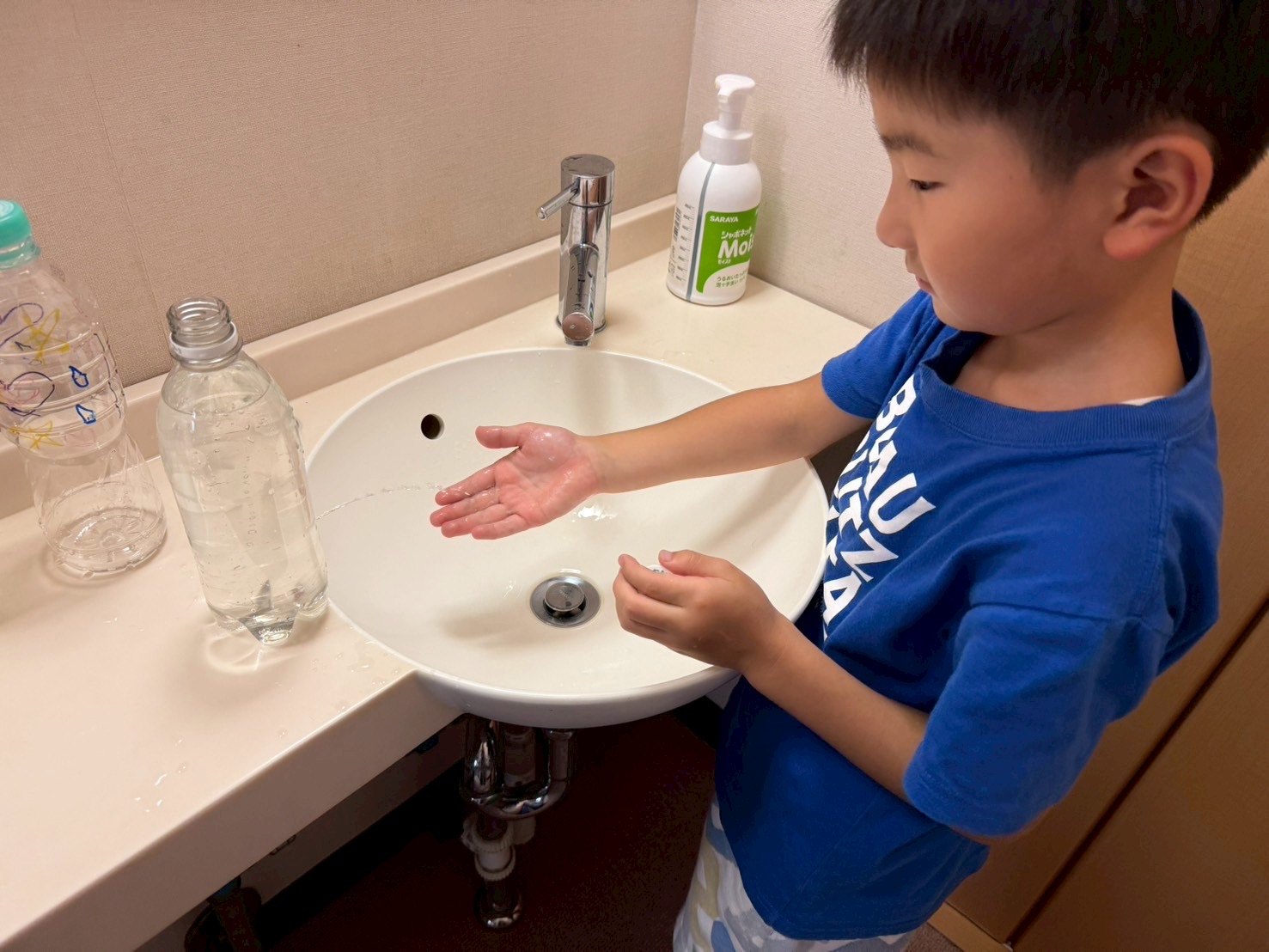 ペットボトル蛇口で手を綺麗に洗ってからはいよいよお昼ごはんの時間です。