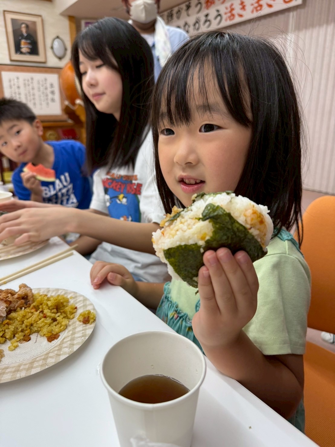炊いたお米にふりかけや海苔をつけてオリジナルおにぎりを作り食べました🍙