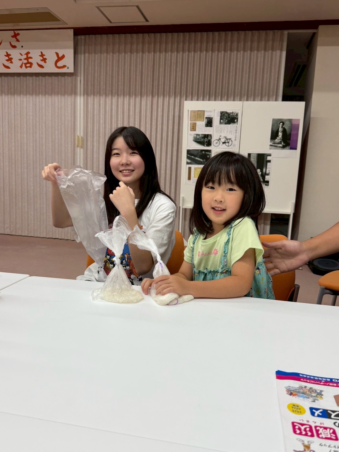 お昼ごはんは、ビニール袋でお米を炊く体験をしました。