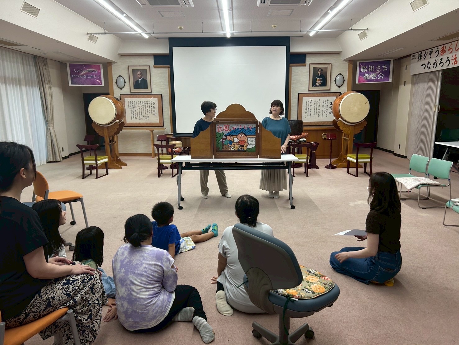 さっきまで走り回っていた子どもたちも紙芝居が始まると真剣になり、お話を聞きました。
