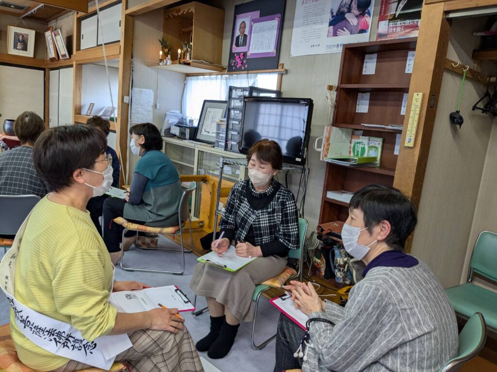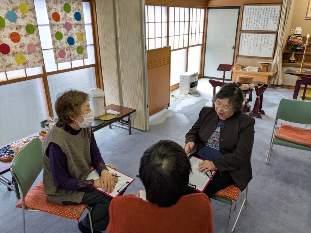 その後の3人法座で、なぜその漢字にしたのか話す、相手の話をきく、そして質問する、確認する 傾聴の実践の時間でした。